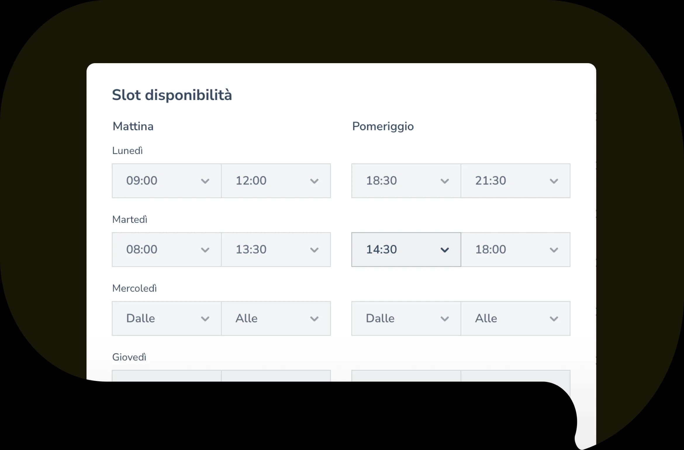 Grazie al modulo delle prenotazioni potrai configurare sessioni formative o confronti con i docenti specificando le diverse disponibilità ed il numero di posti disponibili, di modo da semplificare e coordinare le attività.
